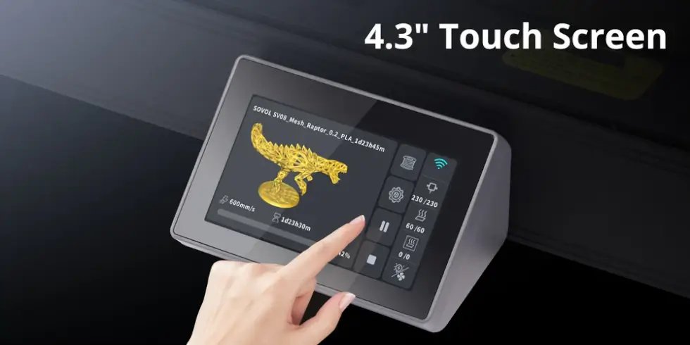 SOVOL presents an open-source, high-speed, large-format “next-generation productivity tool built for makers, engineers, and creators who demand more from their 3D printer.” For structural rigidity and weight savings, the frame boasts an aluminum alloy construction.