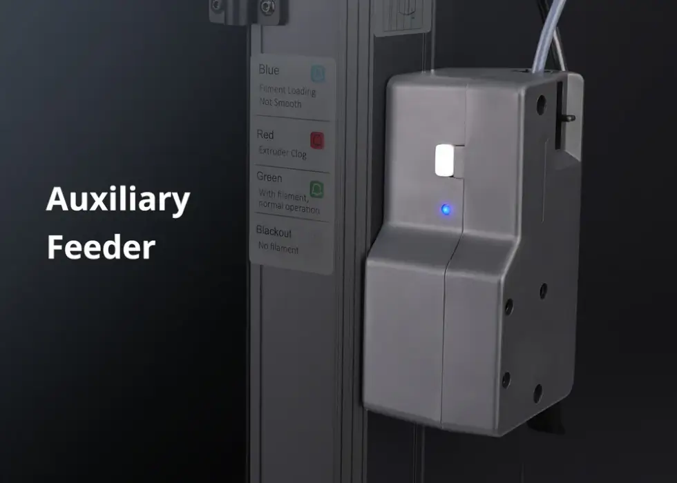 It measures approximately 700 mm x 710 mm x 750 mm (not including the spool holder). The SV08 Max is compatible with filaments up to 1.75 mm in size. A smart auxiliary feeder system supports clog detection, tangle detection, and seamless filament feeding for error-free projects.