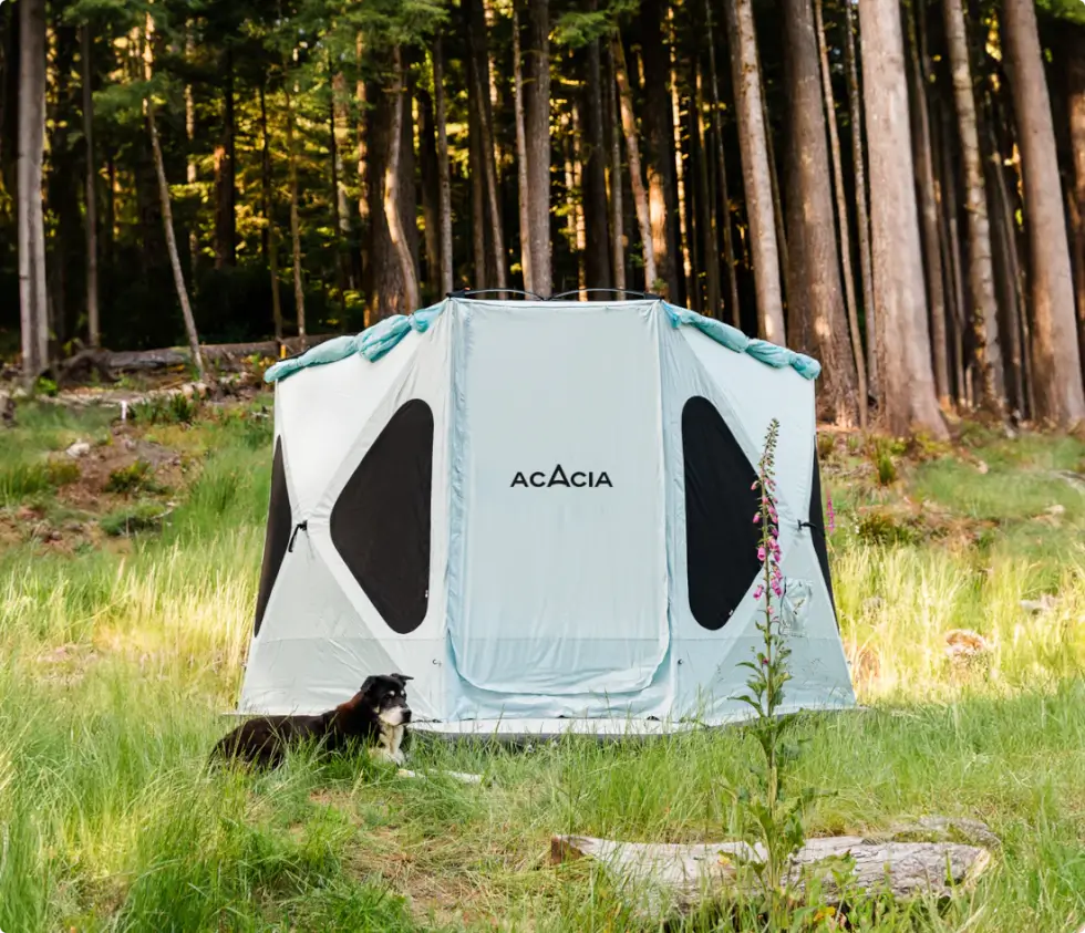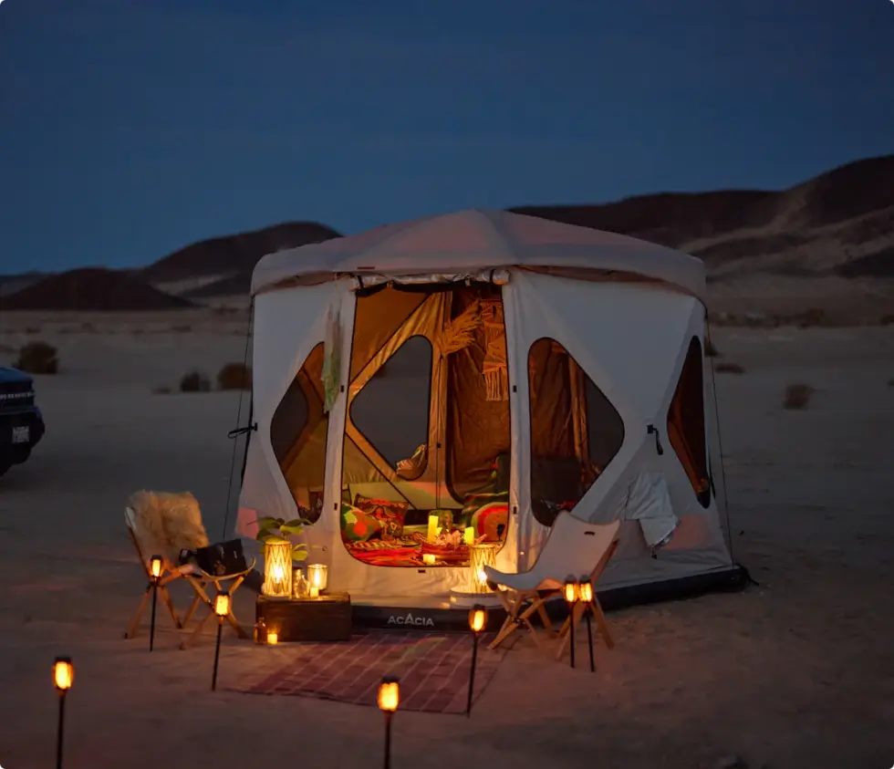 Space Acacia takes outdoor camping to the waters. This is a versatile tent that lets you set up camp either on dry land or on water as it can also float.