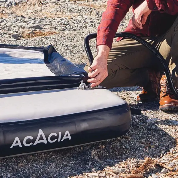 This is “expedition-grade” foldable, carpeted, and inflatable 4-play AirFloor built for all-season comfort. It’s designed to the same specifications applied to inflatable kayaks and SUPs. As such, it can float on water should you decide to go aquatic camping. It sets up fast in just under 15 minutes with the added Acacia electric pump.