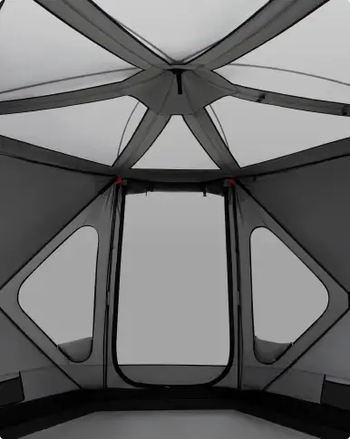This is a 3-in-1, modern and spacious camping system with a first-of-its-kind proprietary Air Floor system and an innovative, temperature-adjusting canopy. It’s a pop-up tent that offers ultimate comfort and protection from the elements, even including flames, and has a generously-sized canopy built for weather protection and for warmth.