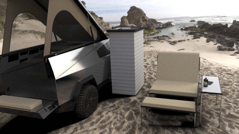 Deck it out with a sink, induction cooktop, portable electric cooler, water tanks and more. Just like Cybertruck, the Space Camper is a tough customer that utilizes aerospace-grade composites and other robust materials in its construction. How would you customize it?