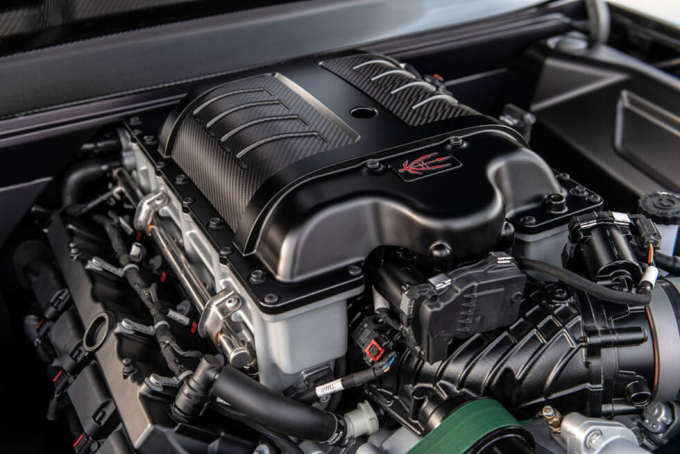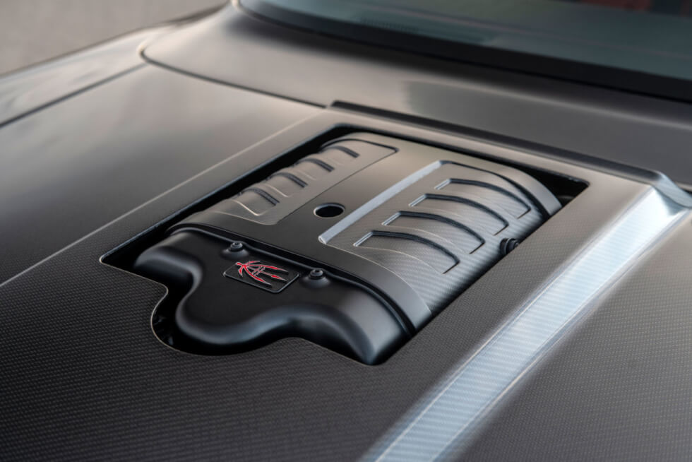 Under the hood is a supercharged 7.0-liter Hellephant V8 engine that generates a staggering 1,000 horsepower with 950 lb-ft of torque. A ZF 8-speed automatic transmission from a Dodge Demon transfers all that monstrous power to its three-piece wheels clad in Michelin Pilot Sport 4S tires.