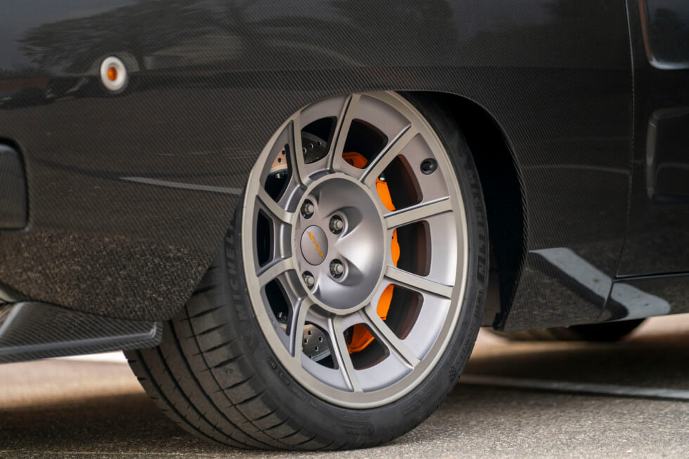It features two of 19” x 9.0” Custom HRE Hellucination wheels for the front and 20” x 12.0” on the rear. All are shod in Michelin Pilot Sport 4S tires. Gabe’s Custom Interiors to give the cockpit a clean modern makeover. Each seat has Race Quip four-point harnesses installed. Overall, this is one powerful, menacing, and sleek ride.