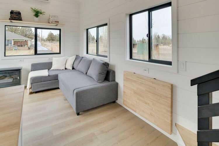 aNot all tiny homes offer the space and design for full-time living, with some focusing more on novelty than livability. Not the Ochoco from Spindrift Homes, which spans an impressive 30 feet long and 10 feet wide. It’s bigger than standard 8.5 feet-wide tiny house designs and easily  comparable to a bachelor pad, albeit on wheels.