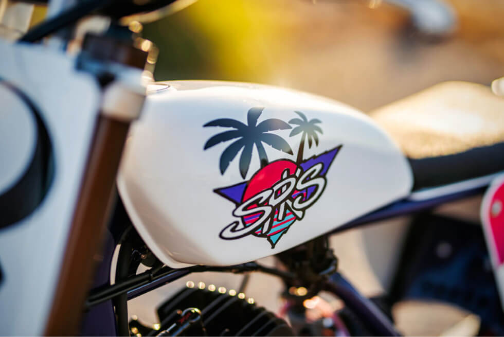 “Even with the extended swingarm, the wheelbase is close to stock due to the steepened head tube angle,” Speak explains in an interview. “As a result, the steering is more responsive and the weight of the bike is now more centralized, and with the low ride height it feels like riding a BMX with an engine.”