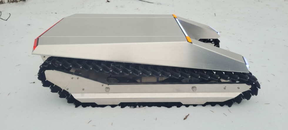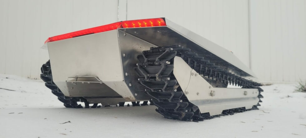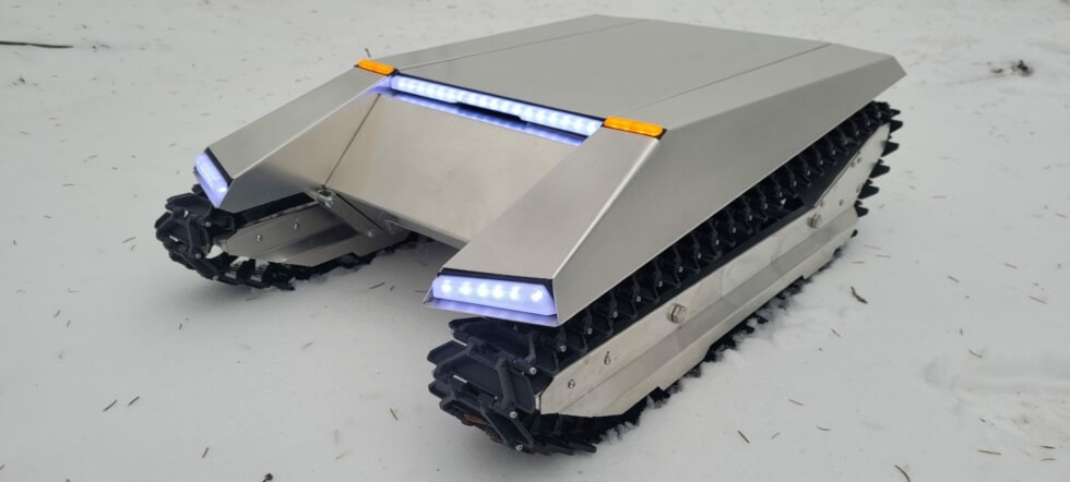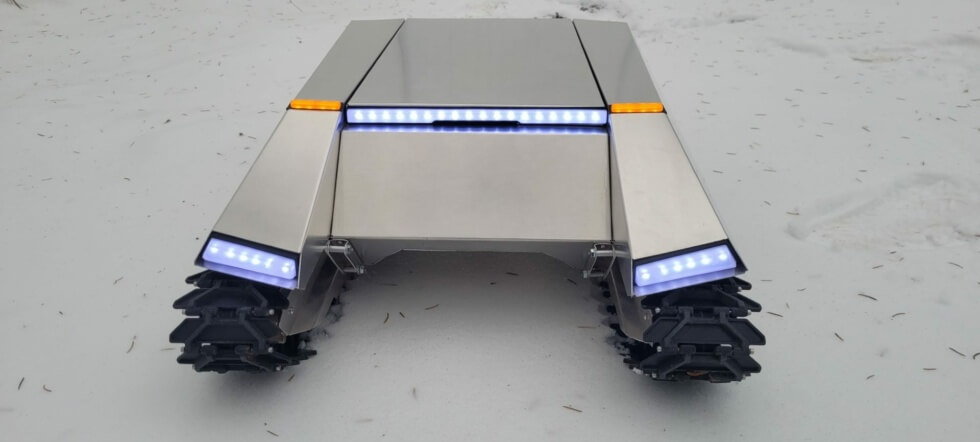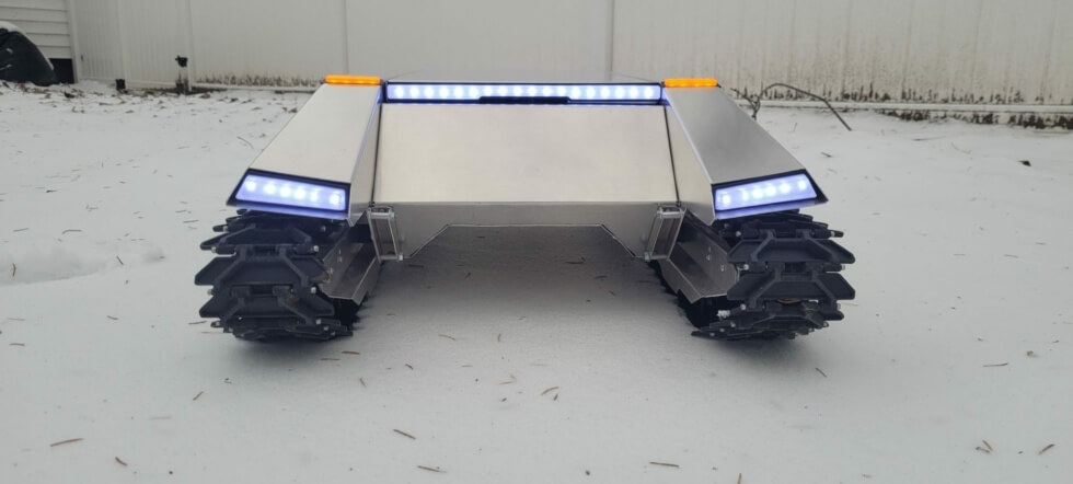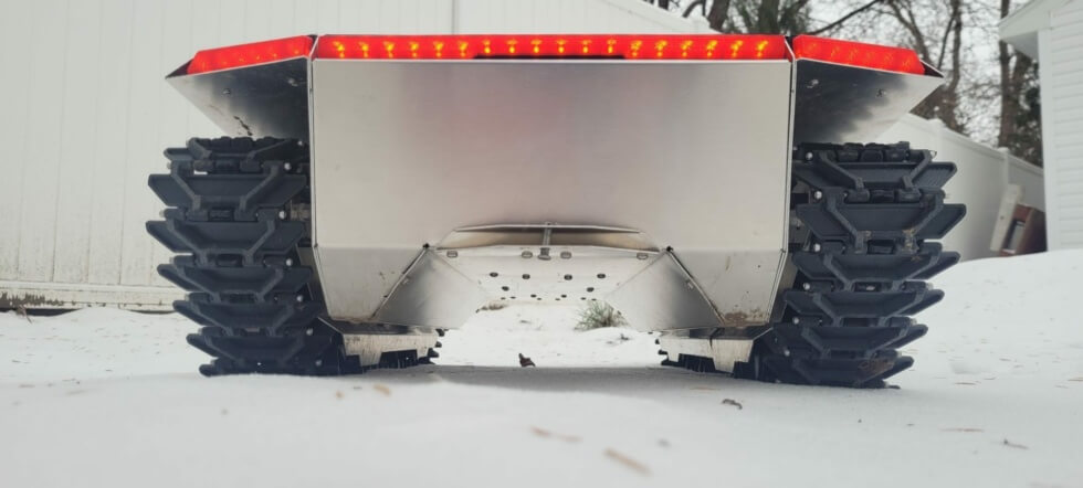 Anyway, Spyker Workshop teases the capabilities of its high-tech machine. At a glance, the CyberKat appears to be a remote-controlled scale model. The treads make it look like a toy tank minus the turret and gun. Meanwhile, its designer, Ryan Butler, endows it with a plasma-cut 5051 aluminum sheet metal frame.