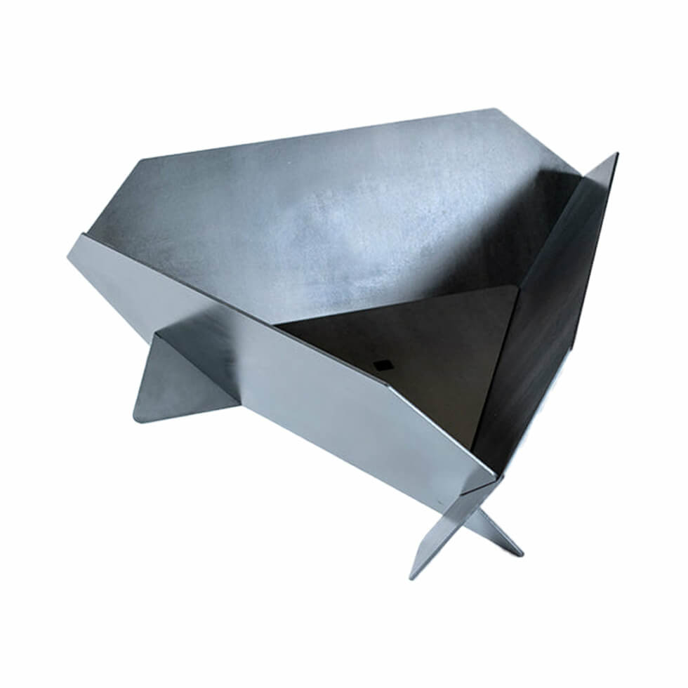 This outdoor gear comes in four easy-to-assemble parts available in either steel, and black and silver anodized aluminum. Its lightweight frame requires no tools or screws for assembly and they come flat packed for easy transport and storage. Like a piece of origami, the pieces align together to form a firepit that’s functionaly stylish.
