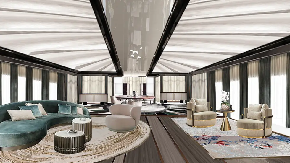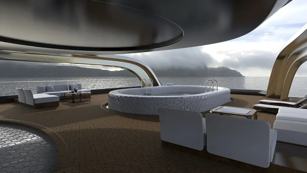 So far, its spaces are large enough to hold an owner’s suite, guest cabins, a lounge, a helipad, a beach club, a garage, and a pool, among others. Coquine Design also calls on Silvia Iraghi to curate exquisite interiors. The Steamer 888 might even come with a matching tender.