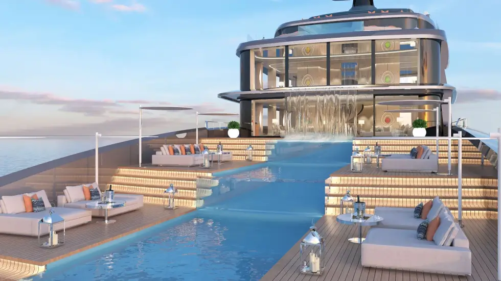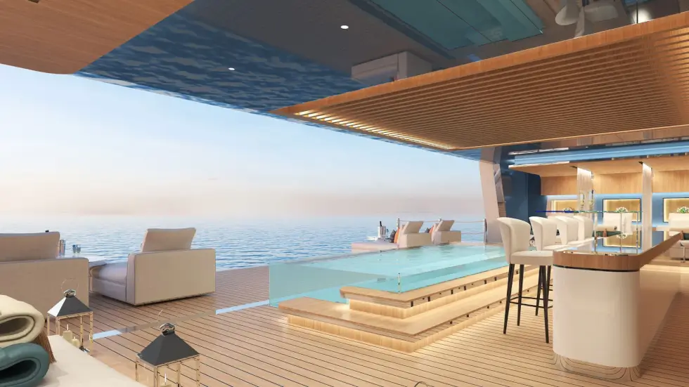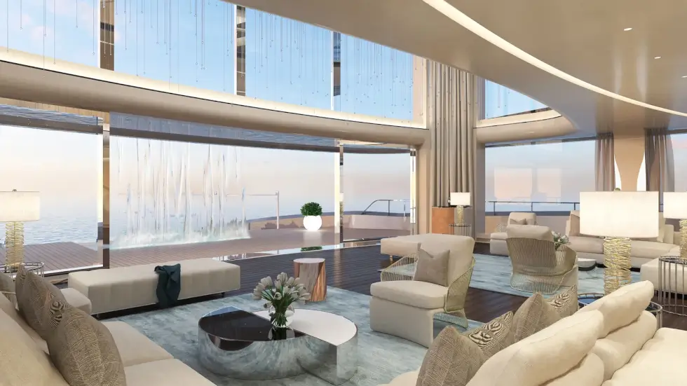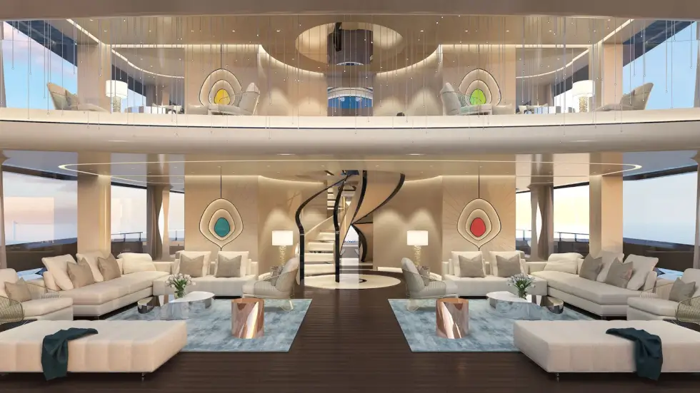 To emulate this in the Stella Del Sud, glass becomes the material of choice. With glazing on almost every corner of the ship, natural light floods the interiors by day. The sheer opulence of this build is showcased in various luxurious appointments.