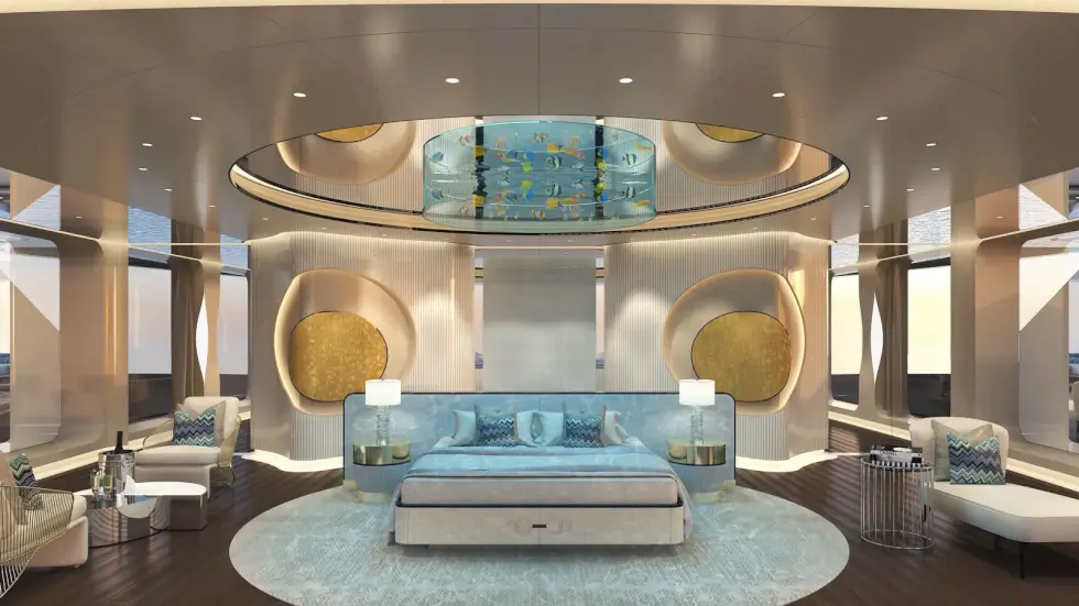There’s a double-height main saloon, the main deck with eight VIP staterooms, a gym, a massage room, a sauna, and other upscale social spaces. Meanwhile, the bridge deck of the Stella Del Sud also features the owner’s suite. It comes with a walk-in wardrobe, a private office, two bathrooms with Jacuzzis, and an aquarium built into the ceiling.