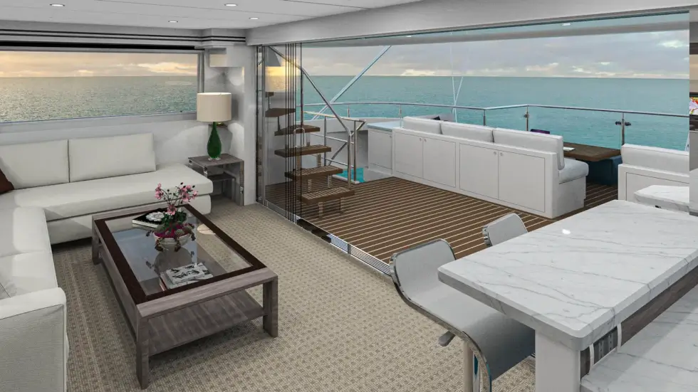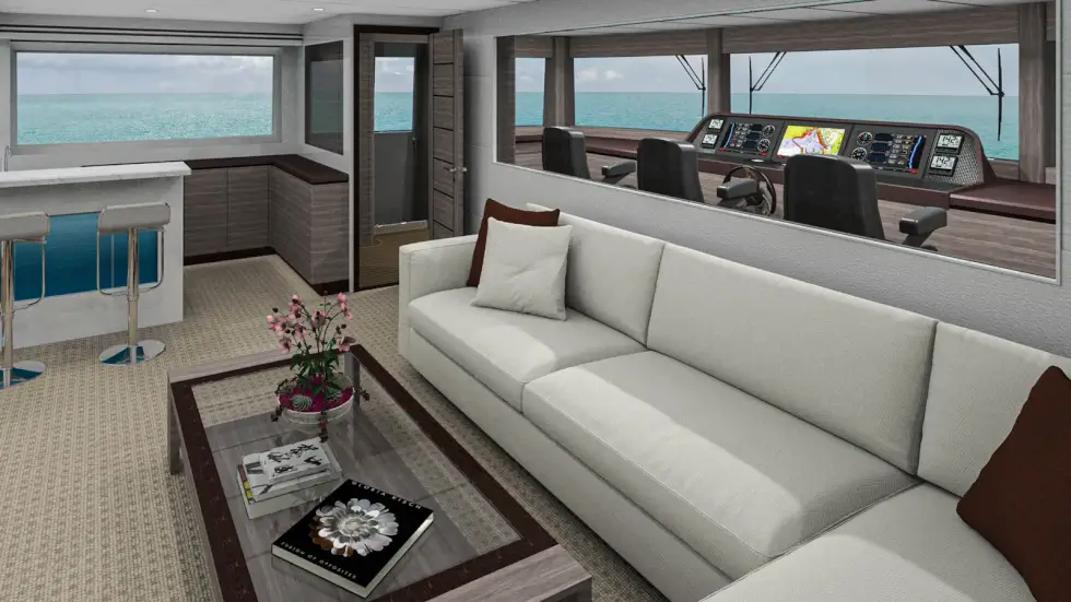 Meanwhile, hydraulic transom doors are available to aid with your catch. Don’t forget to reel them in as quickly as you can before the sharks take a bite out of your prize. In addition. The volumes across multiple decks of the SF2603 are ready for your personal touch. StellarPM outfits the catamaran with two Volvo IPS engines that can push it up to 21 knots.