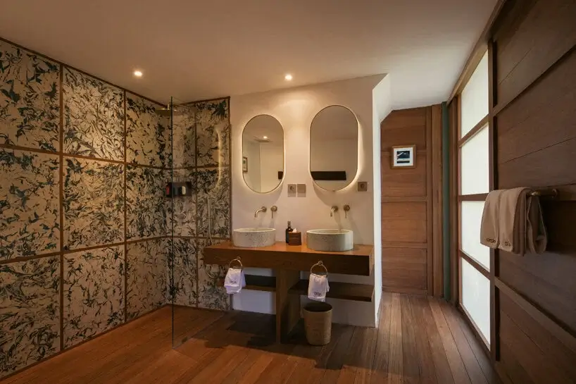Meanwhile, interior finishings draw inspiration from the natural surroundings with the inclusion of earthy tones like teak wood, banana paper, and woven rattan. Frans Sihombing, Stilt Studios’ Lead Interior Designer, says “these materials are then enriched with local decorative elements, creating a warm and distinctly Indonesian ambiance, reminiscent of the comfort of home.”