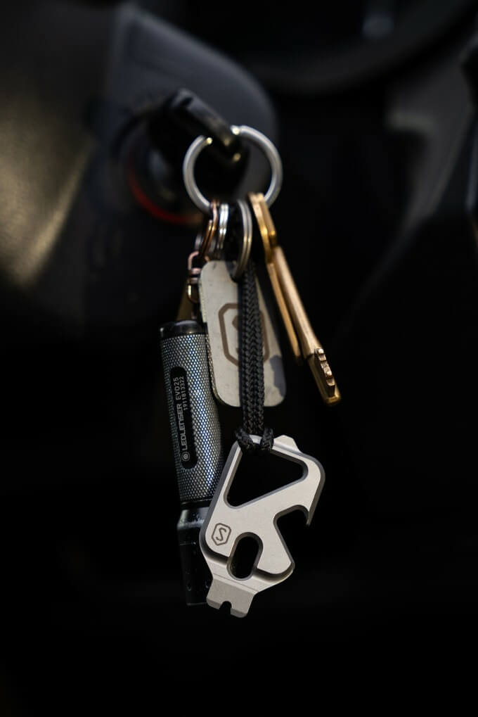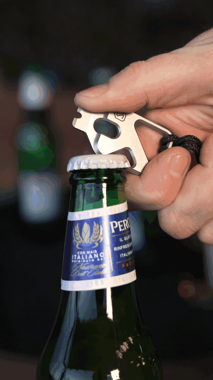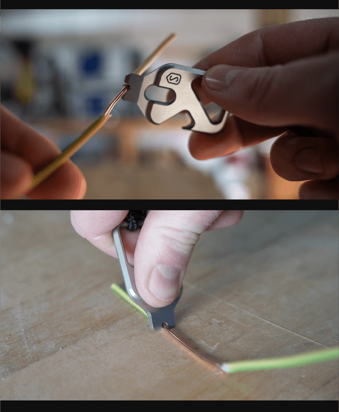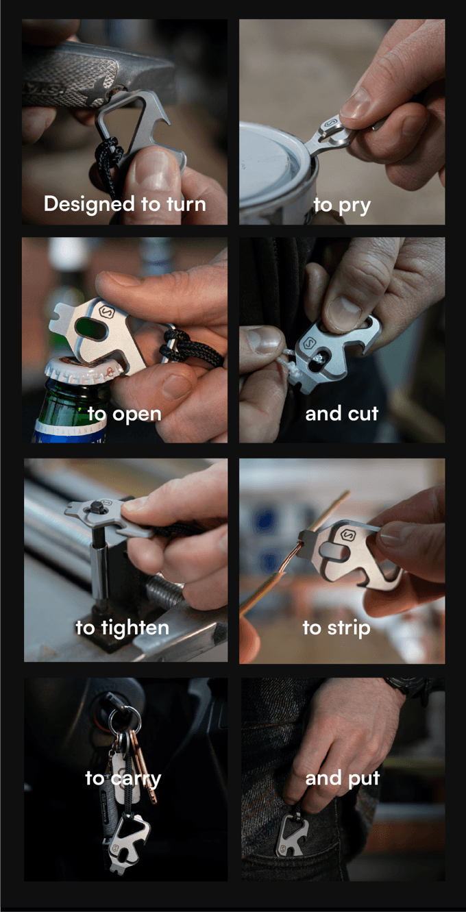 For such a tiny tool, it manages to pack in eight functions. A notched and beveled appendage at one end serves multiple roles, including as a large flat-head screwdriver, a pry bar, a wire stripper, and as a fire-starting ferro rod striker.