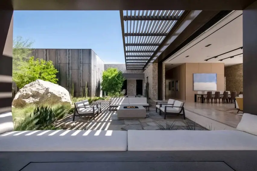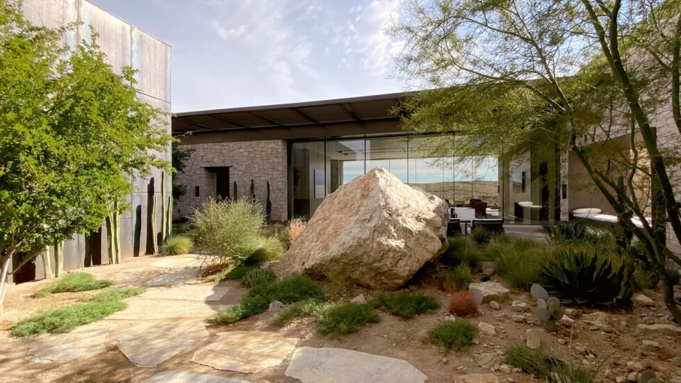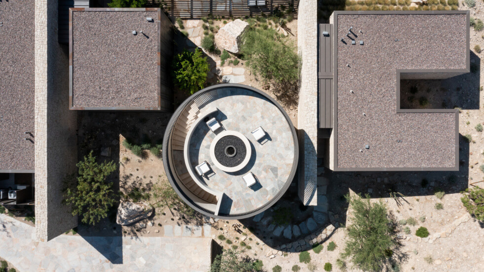 Fort 137 Residence was designed according to its occupants’ love of immersive environmental experiences.  As such, the outdoor area truly makes the most of the setting which includes a rotunda, an outdoor pool, a shaded courtyard that features a 75-ton excavated, and a view frame that overlooks the expansive landscape.