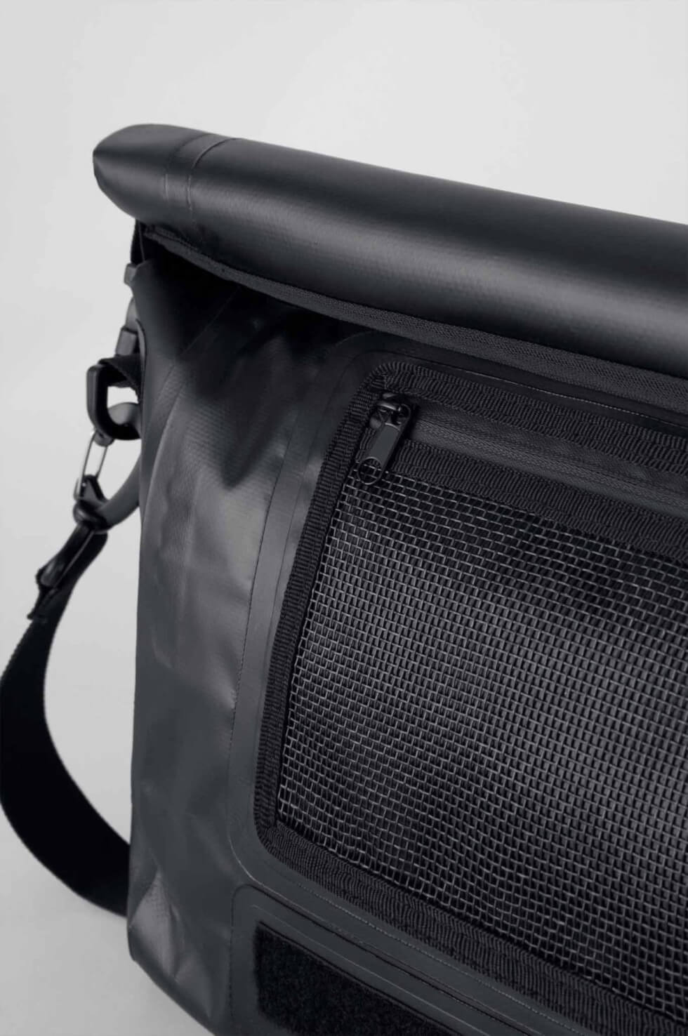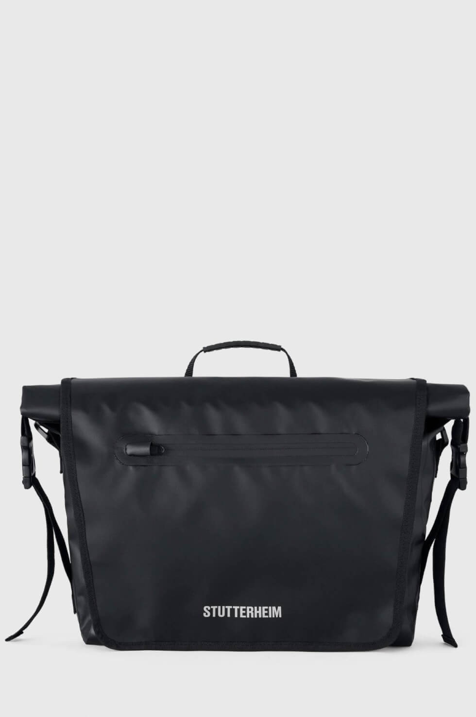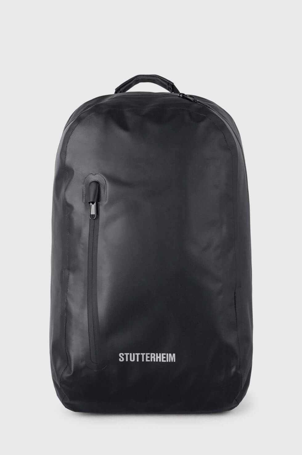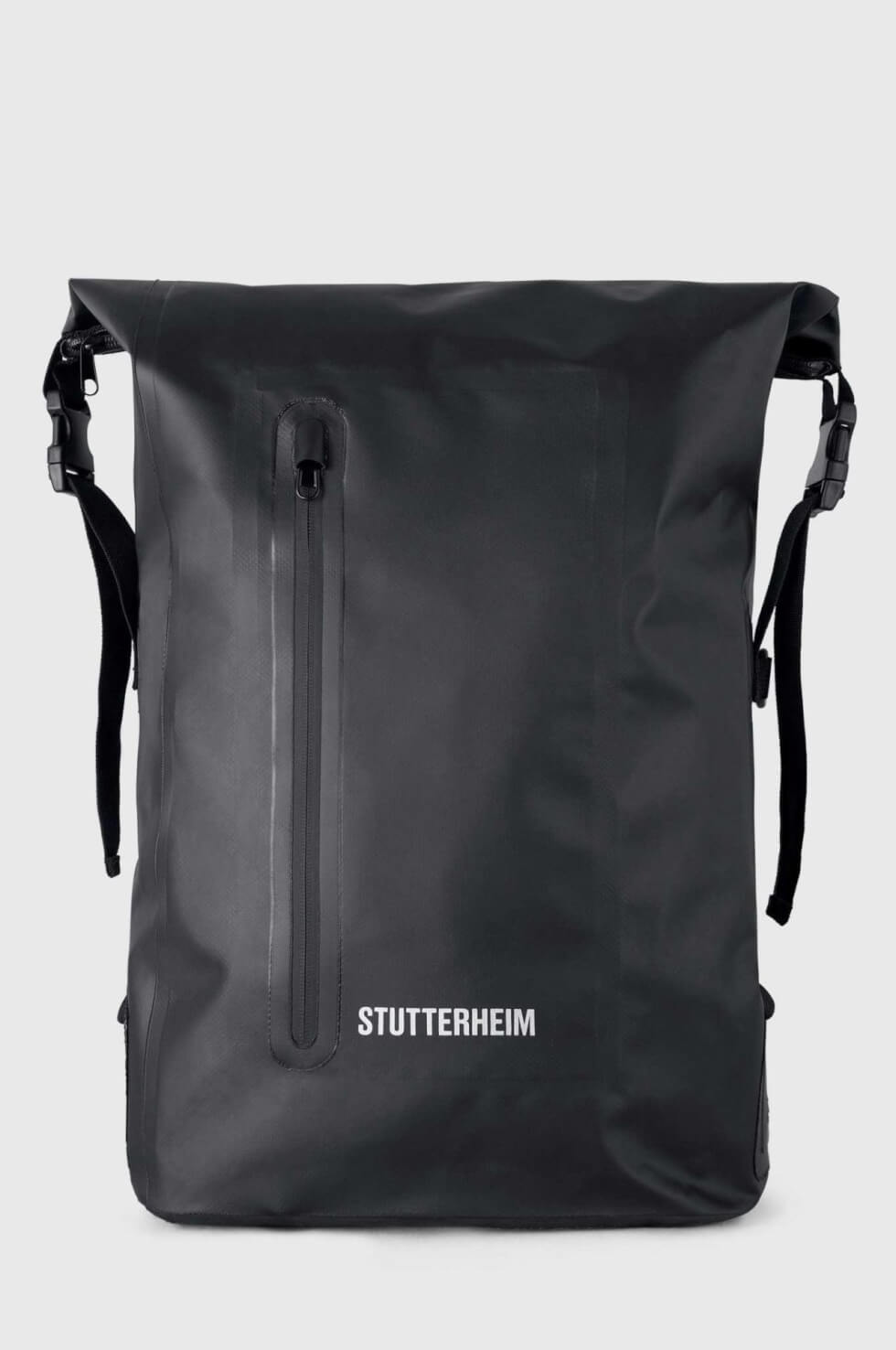 The Stutterheim wet-weather bag capsule all comes in black and in a simple yet modern design. Outside of its internal space, all four designs have zippered compartments on the outside for added storage.