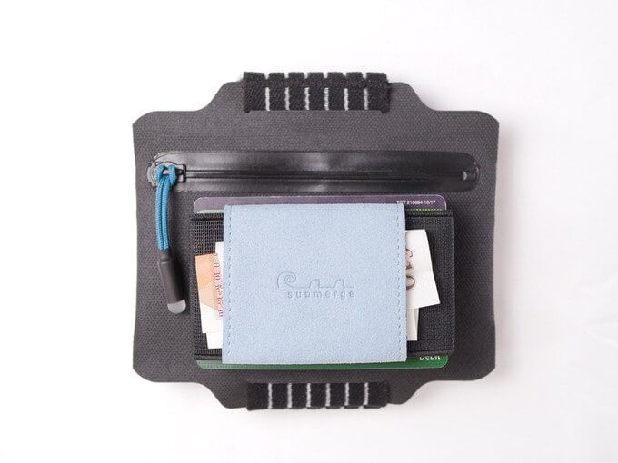 The Submerge Wearable Waterproof Wallet is also durable and has a silky-smooth feel that glides through the water. It gives you two hidden pockets for storage and three sections to hold up to eight cards with an RFID blocker ready. This minimalist wallet can even hold keys and other important small items. A zipper gives you access to the contents while strong detachable velcro straps offer an additional option for carrying.