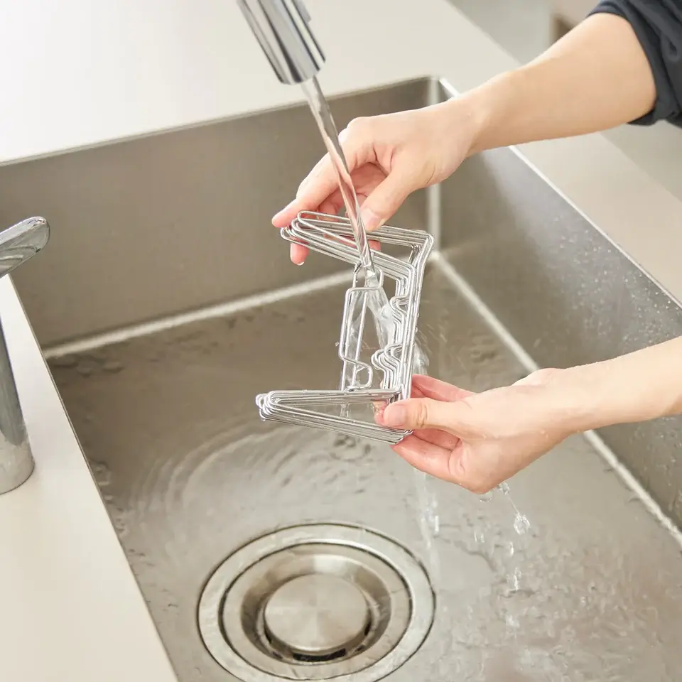 This portable dish rack called the Lop Looop from Japanese designer Sugata Mono Studio is great for those with minimal space on their sink or for outdoor adventures. It collapses down to a small size for easy storage and portability, yet it’s spacious and strong enough to handle utensils, cookware, and tableware.