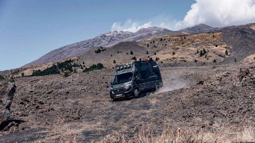 Meanwhile, several transparent domes allow natural lighting into the cabin. Inside, there’s enough space to store your gear, bicycles, and other equipment. There is a couch and a table that can turn into a bed big enough for two. The SUNLIGHT CLIFF 4×4 Adventure Van also features a mobile shower, a freezer, and a removable JBL Bluetooth speaker.