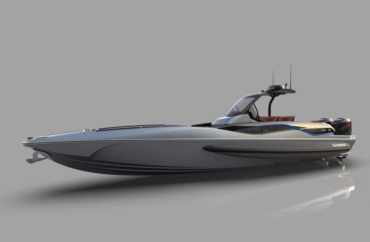 Speaking of the helm, you’ll be please to know there’s a Simrad navigation system built-in. Paired with Mercury Racing Digital Zero Effort throttles, speed and performance are of no concern here, obviously. The hull has been optimized to include the latest outboard engine technology. That means a handful of performance benefits and low-cost maintenance for boat owners.