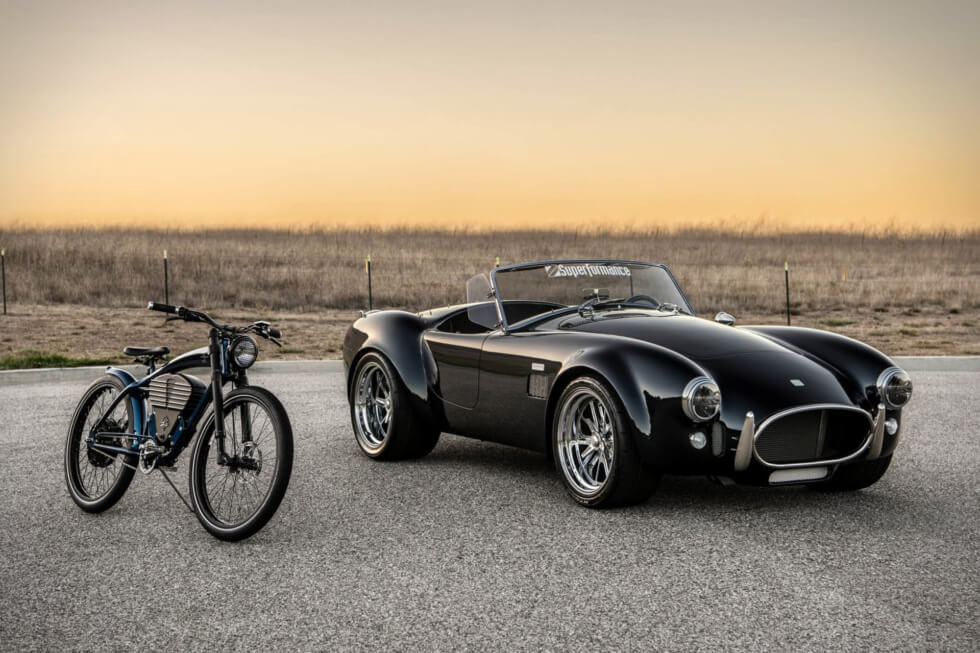 There was no mention of horsepower output, but torque is apparently a whopping 1,000 lb-ft. The timeless appeal of the sports car’s silhouette is intact on the Mk III-E. Superformance even sweetens the deal with a Shelby e-bike from Vintage in a matching colorway with the sports car.
