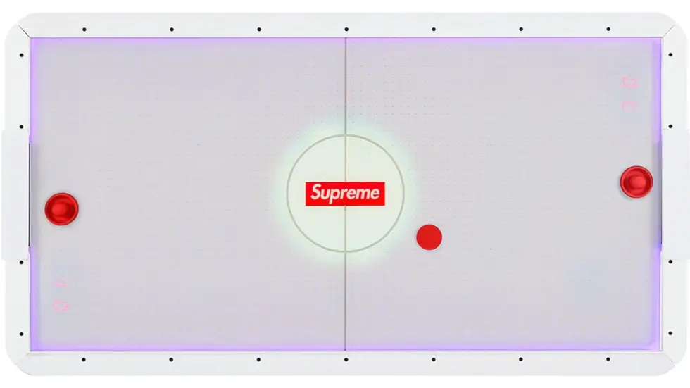 The New York City-based streetwear brand has teamed up with Valley for a new air hockey table that pays homage to the classics. The Supreme/Valley LED Air Hockey Table boasts a 1960s and ’70s vibe but with a modern touch.