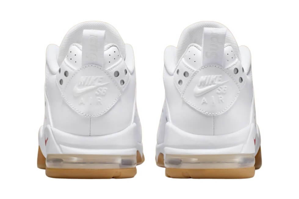 The co-branding on these is subtle, which may dissuade some collectors. Usually, the iconic white “Supreme” script against a bold crimson background appears large and loud. However, the only sections where it shows are on the sockliner, heel pull tabs, tongue tag, and on an outsole cutout close to the heels.