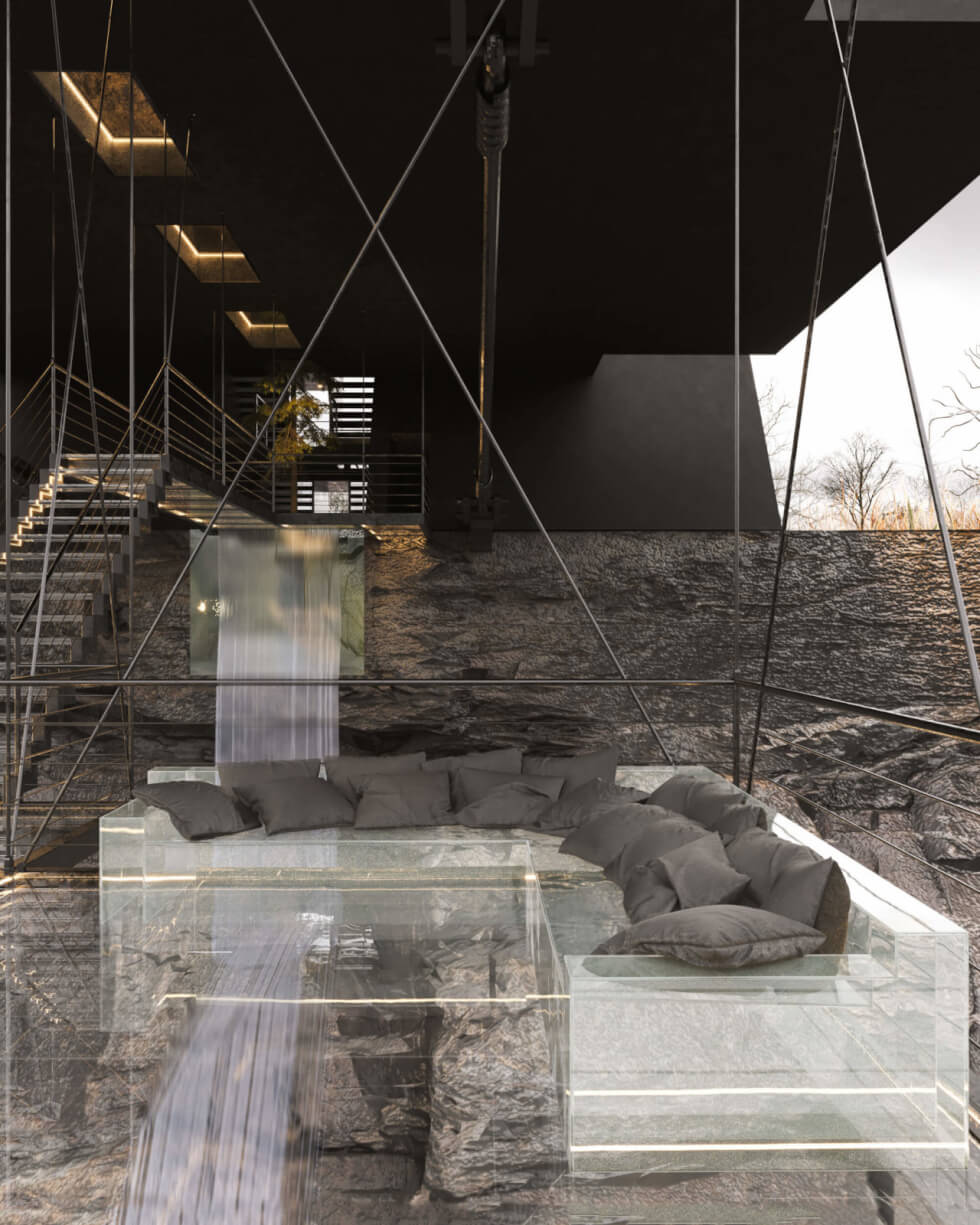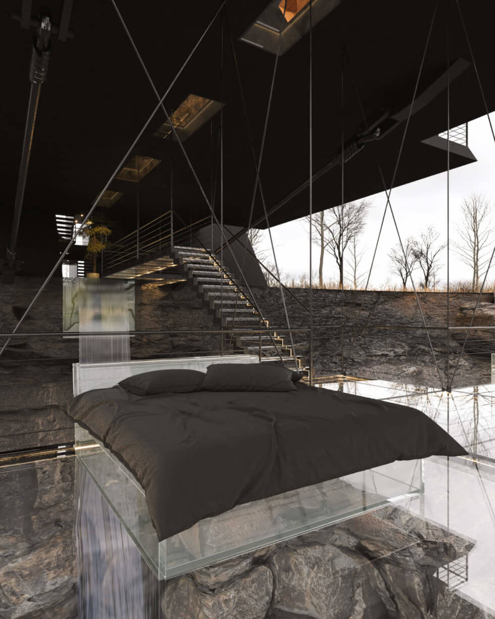 To really test your courage, head down to the terrace. The transparent panels underfoot will let you feel what it’s like to walk on air. From what the renders show, the Suspended House looks cozy and inviting.