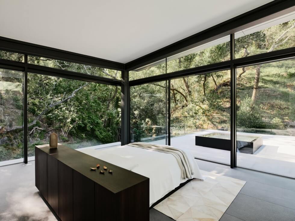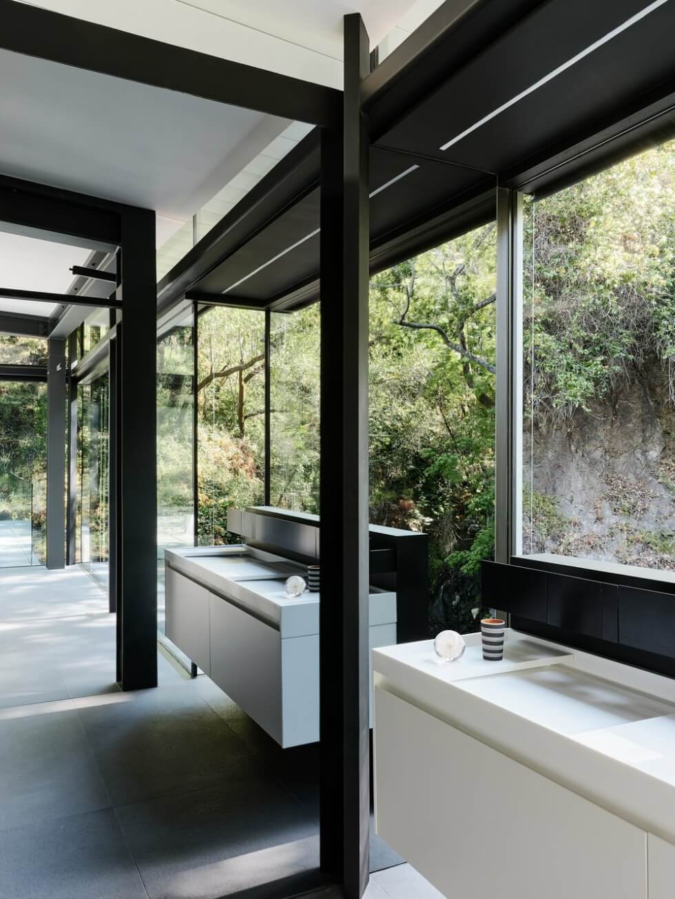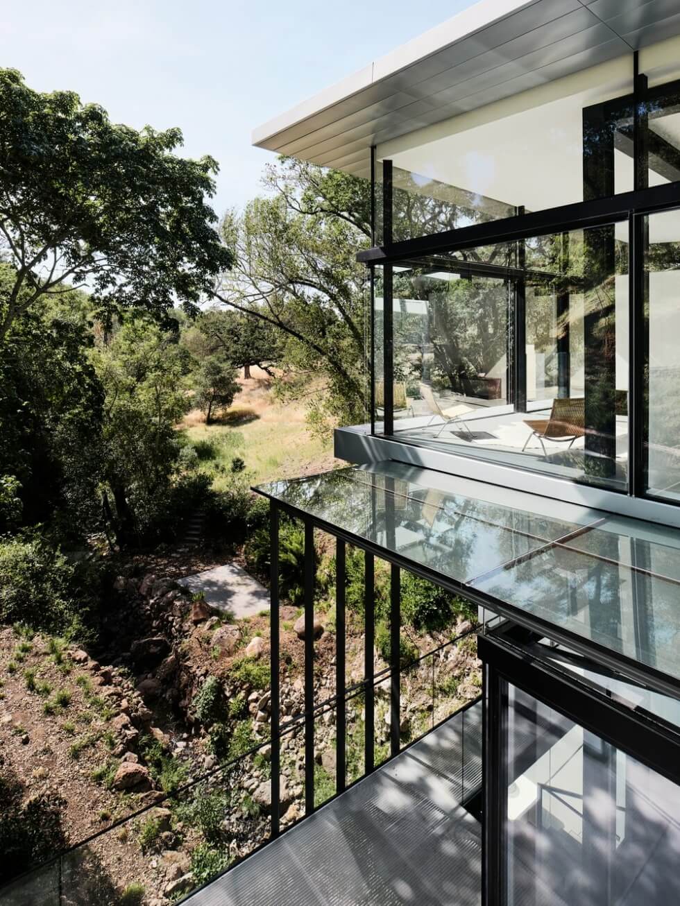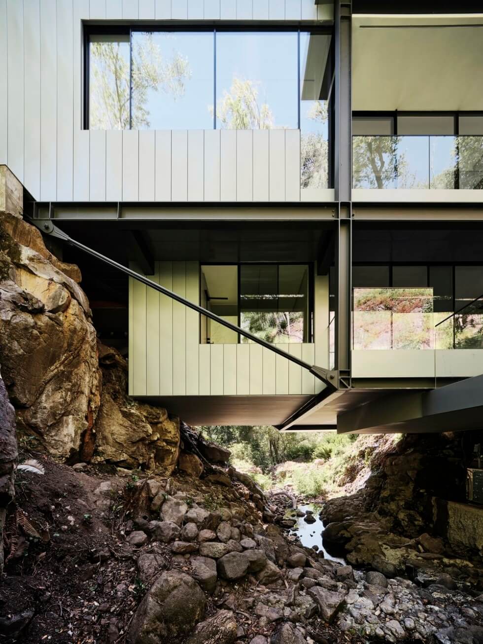 This striking abode is the work of Fougeron Architecture. It seems to defy gravity at first glance, but the closer you get and the clever engineering behind it becomes clearer. As the name tells us, the studio is situating the residence between two hills in California. This retreat hovers over a creek and features a waterfall in the backyard.