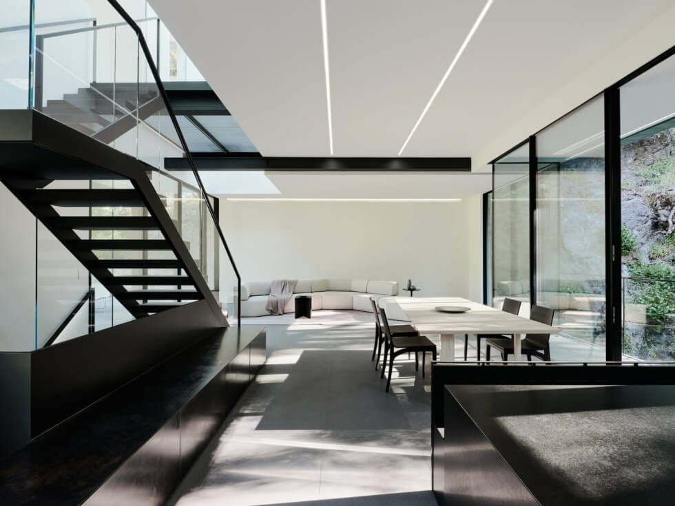 To ensure residents can enjoy the beautiful landscape of the property, the suspension house uses steel and glass. The generous application of glazing allows natural light to fill the interiors by day. Moreover, you get panoramic views of the serene surroundings. Furthermore, the interiors appear more expansive courtesy of the transparency.