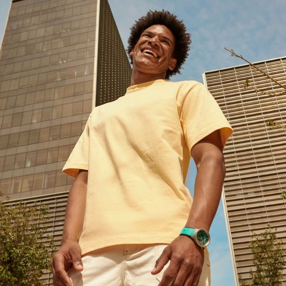 Keep in mind that the overall design is consistent across all variants, save for their vibrant hues. Each unit’s 47 mm case is constructed out of durable stainless steel which sports a sandblasted finish and is water resistant up to three bars.