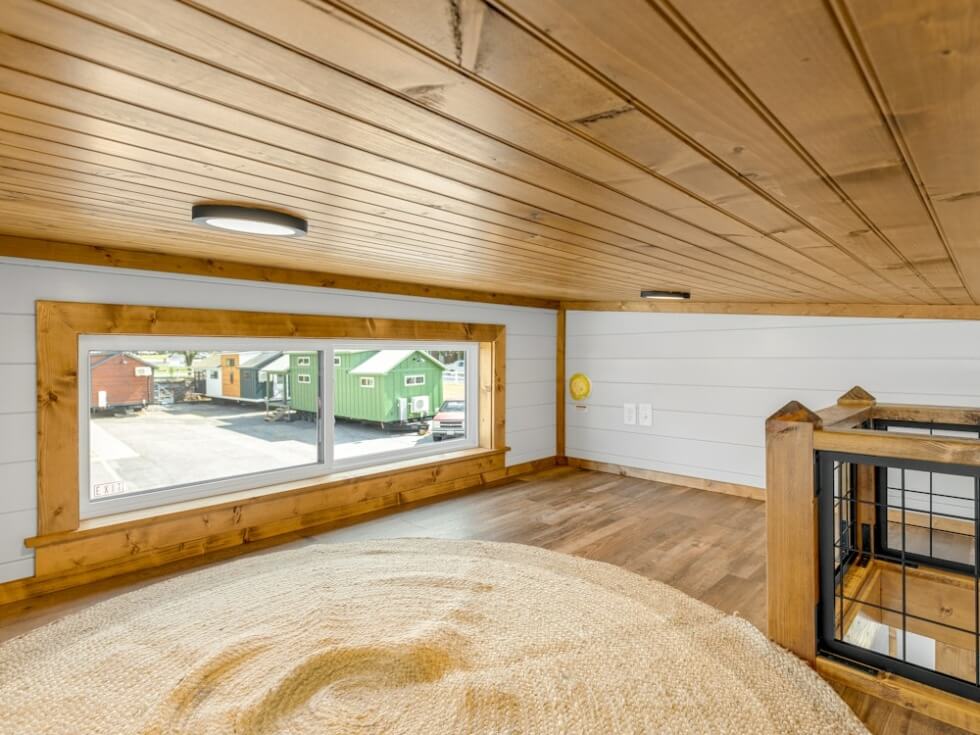 Built on a quad-axle trailer, it’s hardly describable as tiny. It spans 6 feet (14 meters) long and 13 feet (3.9 meters) wide. It offers nearly 400 square feet (37 square meters) of luxurious living space furnished with all modern amenities to make it into a full-time home.
