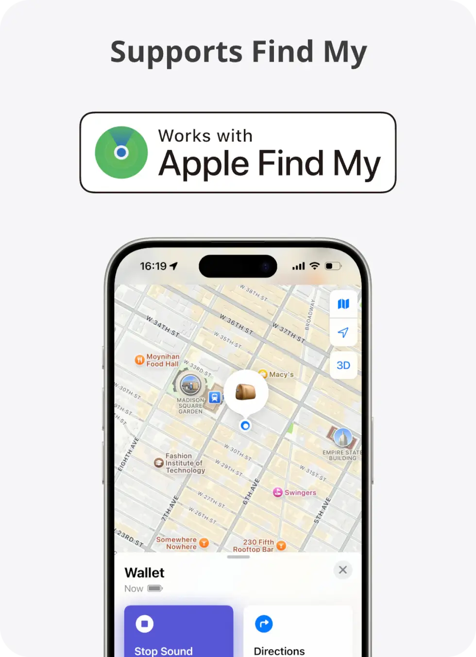 The problem with common wallet trackers nowadays is their size. They tend to be thick and so adds bulk. But this tracker is incredibly thin and lightweight at 12g. It’s slimmer than a coin at just 2.5mm, making it ideal to slip into card wallets, card cases, backpack sleeves, wallets, or into tight spaces of your everyday carry gear.