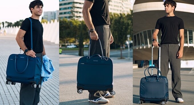 The VOYAY is made from premium materials including a durable waterproof nylon body with genuine leather trims for a refined finish. Then premium metal accents enhanced its durability and authentic smooth YKK zippers offer water-resistance. It offers 30L of storage capacity at a lighter and compact build: it weighs approximately 2.3 kg (lighter than most wheeled carry-ons) and measures just 17.32″ (H) × 13.78″ (W) × 7.88″ (D).