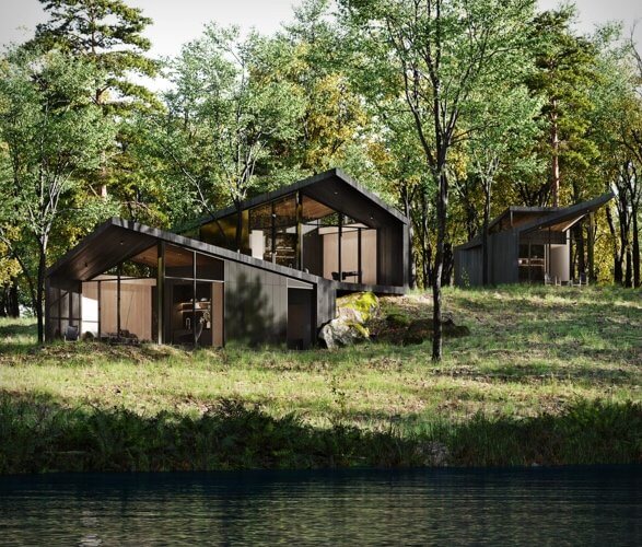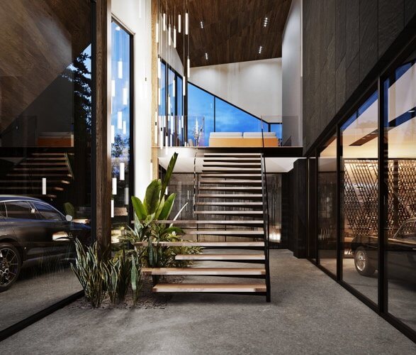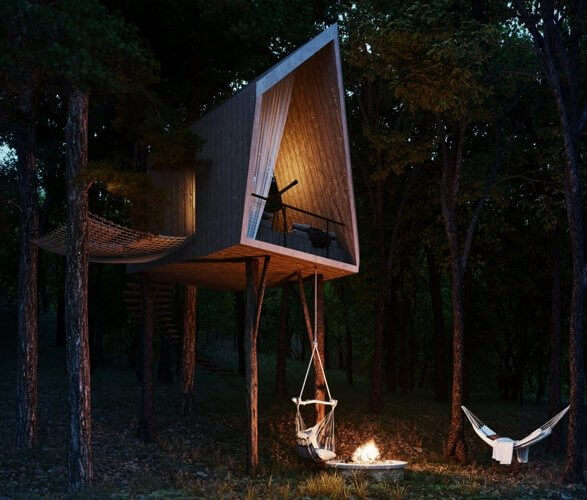 Moreover, the Sylvan Rock House has an on-property agricultural garden that produces fruits and vegetables for consumption. Guests can enter the gardens via a second staff entrance this way it ensures privacy for the owner and ease of maintenance for the farmers. The property also hosts a treehouse that provides unique viewing opportunities of local wildlife. There are also three remote guest pods for visitors. The pods sit in an array nearby the planned pond and function as sleeping quarters or remote wellness or office. Guests have access to the wet bar and kitchen.