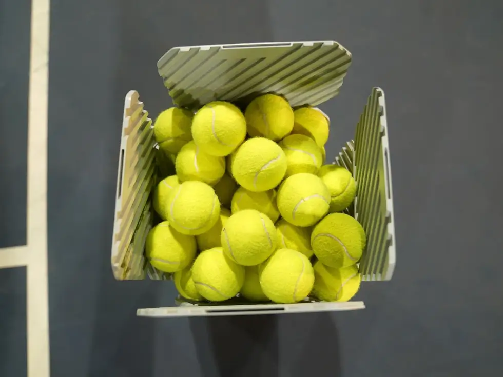 The Tennix weighs approximately 15.4 lbs. and can hold up to 100 tennis balls. A full charge of its battery lasts up to four hours of grueling training. It can launch tennis balls up to 75 mph in various angles and with a maximum spin of 5,000 rpm.