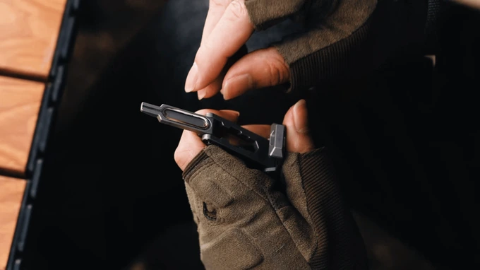 Moreover, the T-Rex stand has a magnetic SIM ejector neatly tucked into the side of the folding mechanism. There’s also a file, a laser-engraved dual-scale ruler, and a ceramic glass breaker. The sharp edge of the stand can also strike a fire with a ferro rod. Then for visibility in the dark, there are two slots to insert tritium rods.