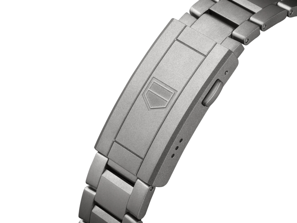 This sleek silhouette is also available in other colorways and materials, but the titanium version might be the classiest one yet. Its grade 2 titanium construction guarantees users a remarkable strength-to-weight ratio. The heavy-duty characteristics of the material make it a favorite among luxury watchmakers.
