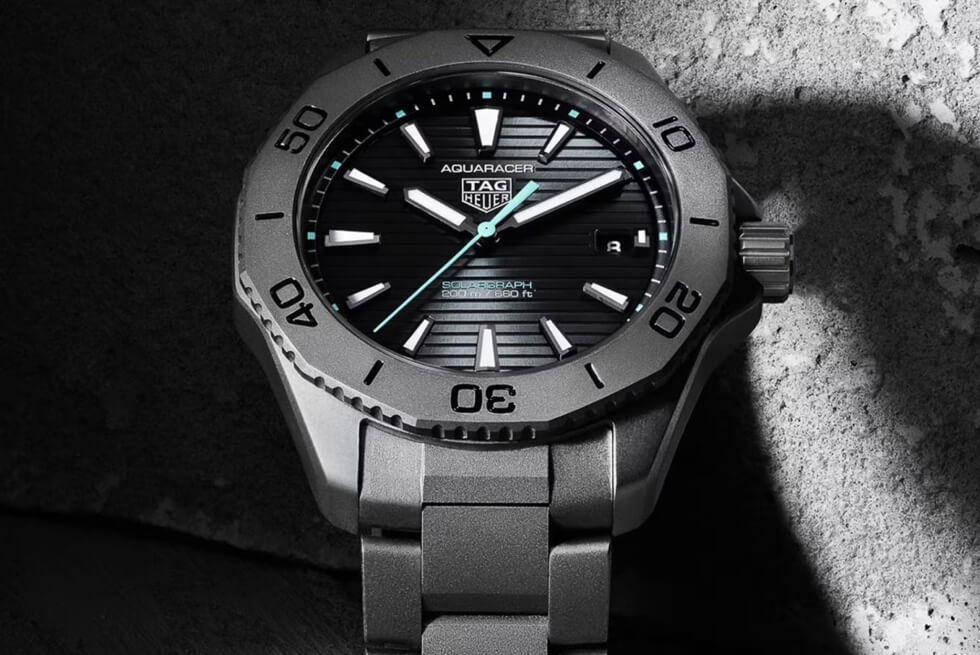 Racing fanatics were recently treated to a spectacular revamp of the Monza Flyback Chronometer in forged carbon fiber with blue accents. However, TAG Heuer also has something for fans of minimalist timepieces. As long as you’re not a snob when it comes to movements, the Aquaracer Professional 200 Solargraph is a dapper choice for any gentleman.