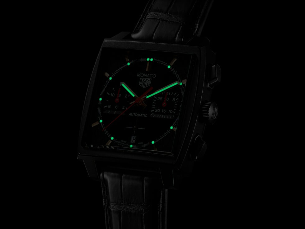 We’ve featured a blackout timepiece with a square outline before, but that was from Bell & Ross. According to the watchmaker, this new release is “paying homage to the rare and mythical all-black Monaco of the 70s.” Some might argue that slightly bulging sides can classify it as a tonneau, but it does not taper too aggressively near to lugs to make it so.