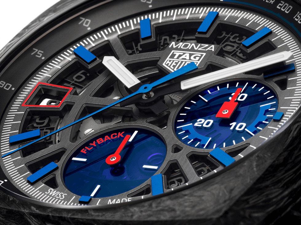 It may not be on the same level of popularity as the brand’s Monaco or Carrera series, but there are discerning folks who prefer it over the others. Starting with the case, the Monza Flyback Chronometer flaunts a 42 mm forged carbon case with a black PVD grade 5 titanium case back.
