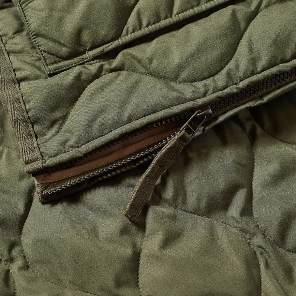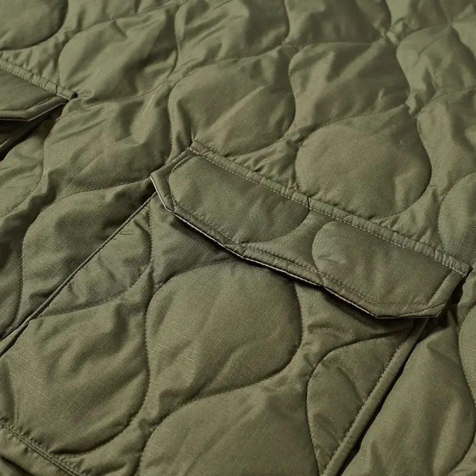TAION’s Military Pullover Quilted Puffer Shirt also features ribbed cuffs for a secure fit. Meanwhile, the zippers on the side provide more room for mobility at the hip and for a more relaxed fit. Although, you can easily keep them close using the added pull tabs.