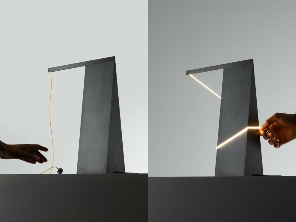 Flip a switch, get a light. This basic premise operates any lighting fixture no matter how modern its design. But the Tangent Lamp offers a playful approach into this method. Instead of the usual power button, it utilizes a magnetic connection activated by a gentle touch of the hand.