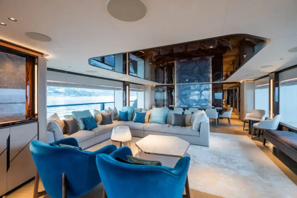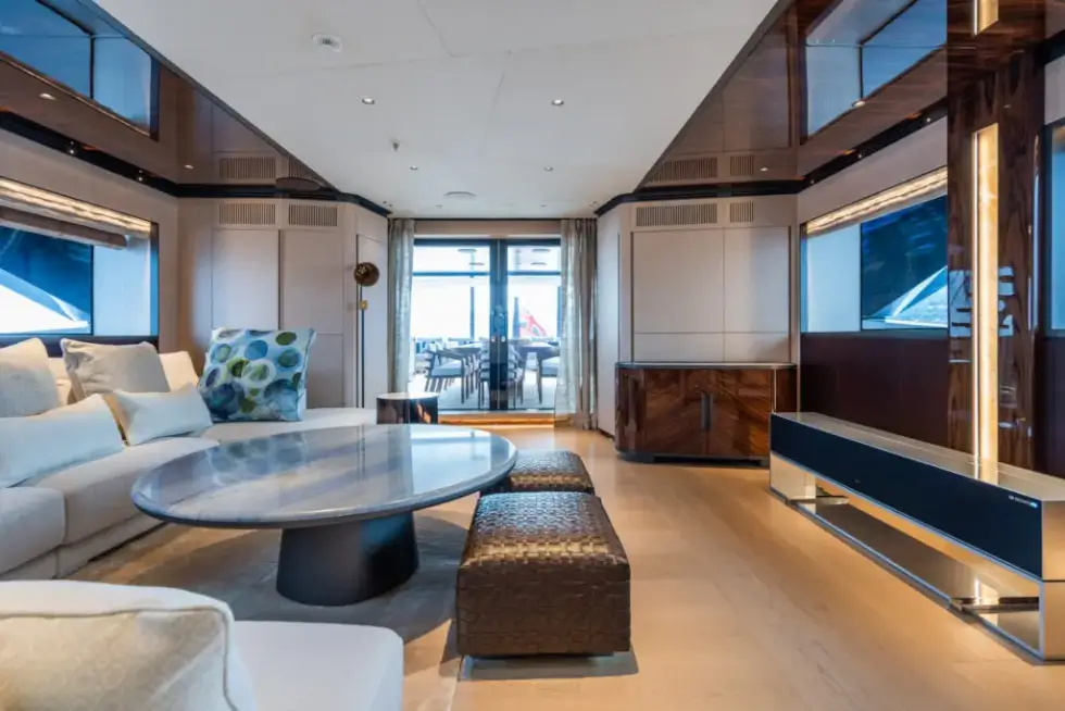 According to insiders, the superyacht boasts an exceptional visual and acoustic entertainment package. This involves a foredeck outfitted with a massive pop-up display which is positioned right in front of the swimming pool. To make it even more immersive, we have a premium sound system supplied by Naim and Focal. A lounge is likewise available for those who prefer to keep dry while watching.