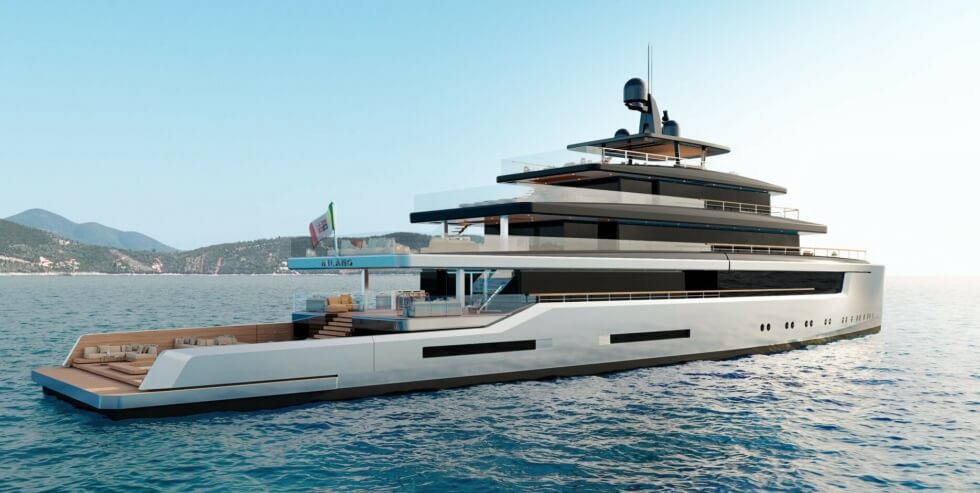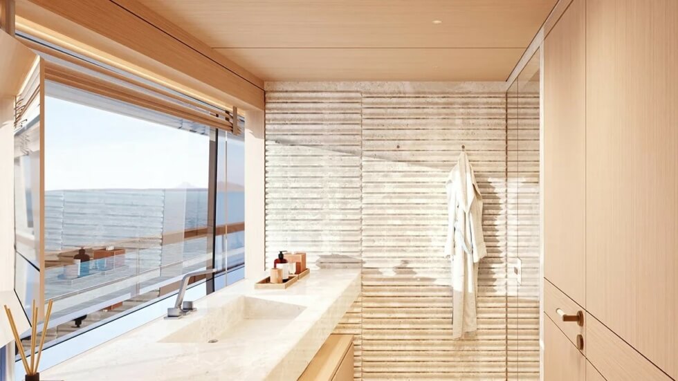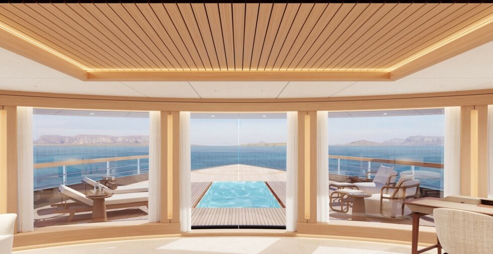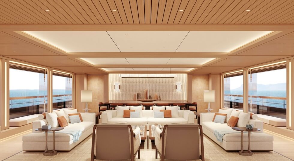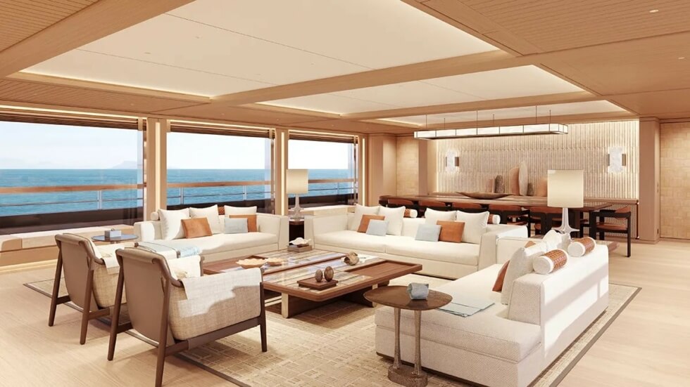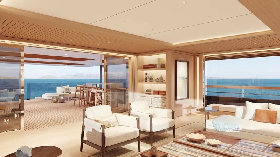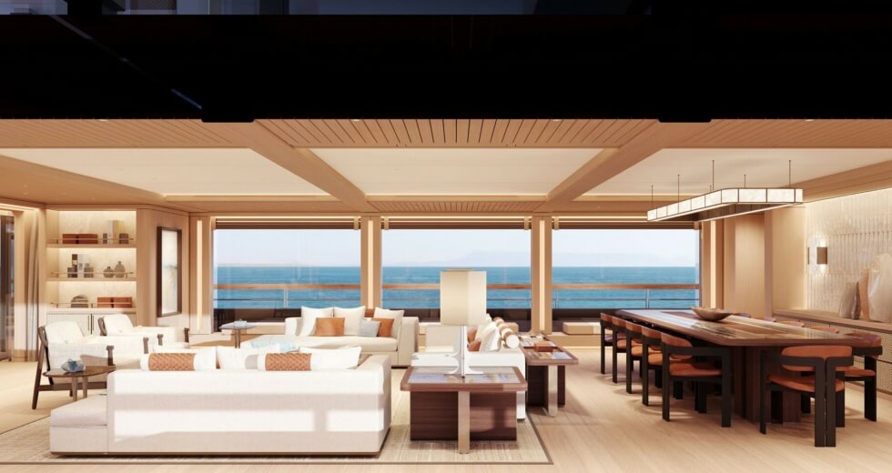 It features a walk-in closet, a study, two bathrooms, an outdoor dining area, and a sky lounge. The beach club at the stern is where you’ll find a swimming pool, fold-out terraces, a wellness room, a gym, and a lounge. Supplying the Milano with enough grunt to reach 16.5 knots are 1,650 kW e-motors powered by variable-speed CAT C32 generators.
