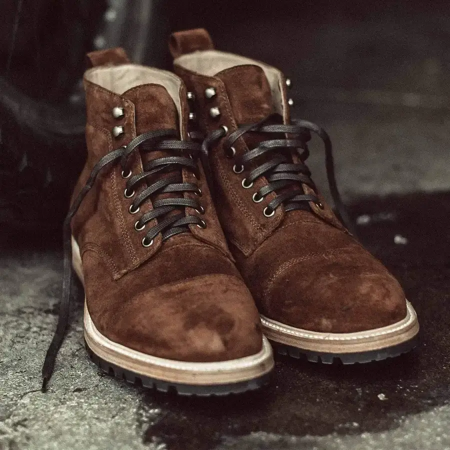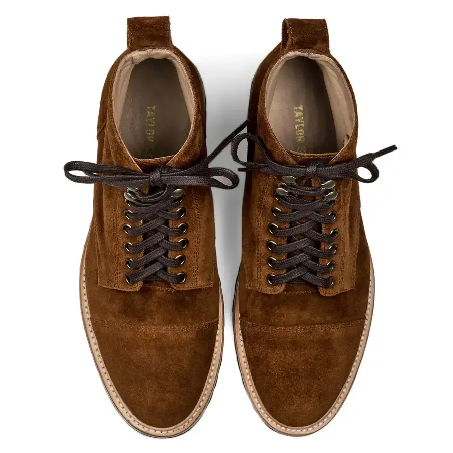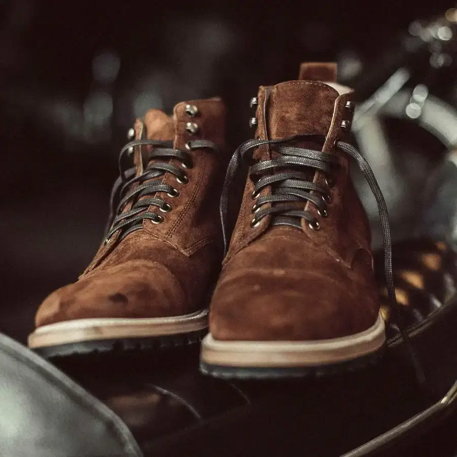 Not to mention, this boot also has a rugged Vibram sole for great energy return and comfort with each step and a true, sleek double-layer cap-toe construction for a casual look. Other notable features in Taylor Stitch’s Moto Boot in Weatherproof Snuffle Suede include waxed cotton laces, natural leather midsole, storm welt, leather heel tabs, and six antique brass eyelets with two antique brass speed hooks.