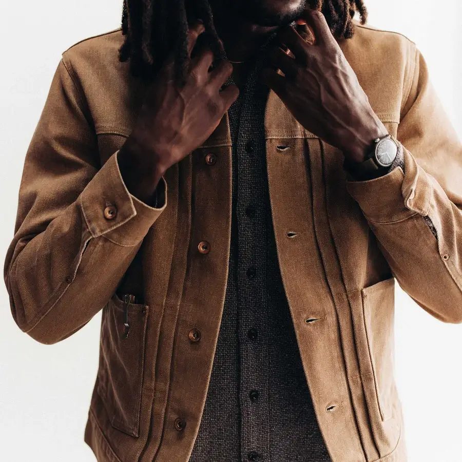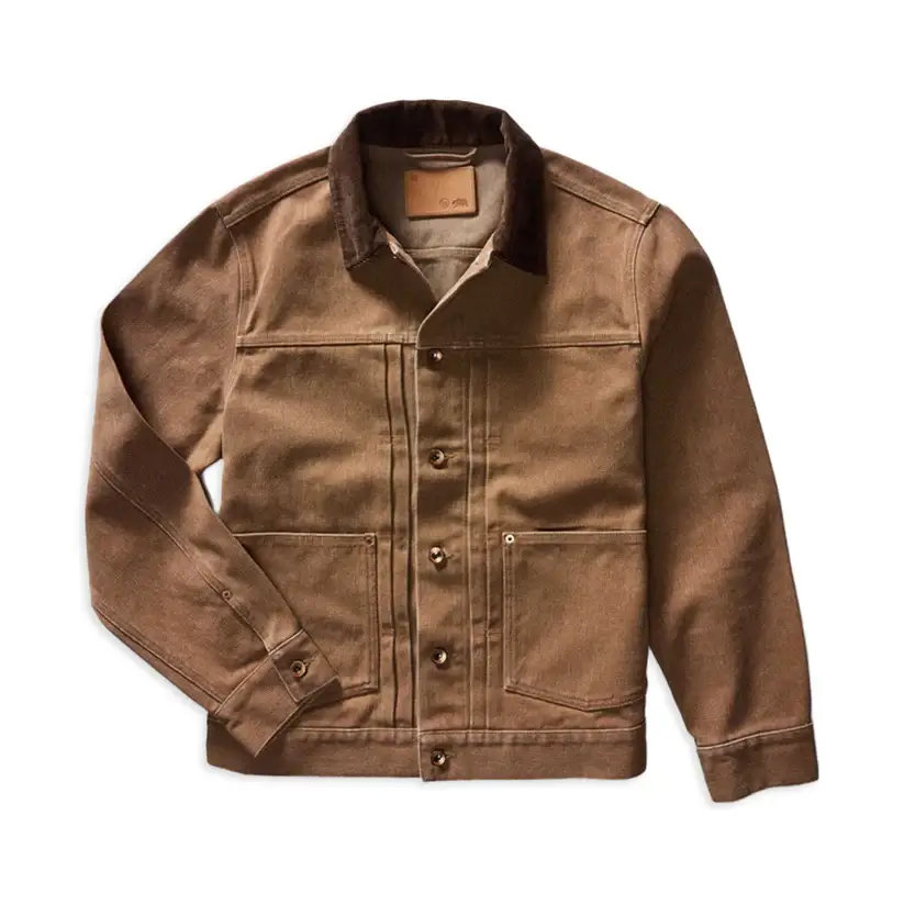 Taylor Stitch outfits its vintage-inspired trucker jacket, The Ryder Jacket, in Tobacco Chipped Canvas to make it work ready. This jacket is ready to tackle days on the job with its thick and durable double-needle construction.