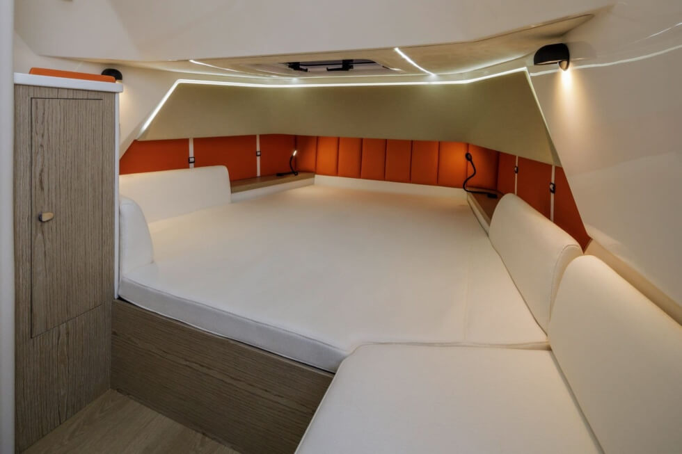 Sunbeds are located at the bow and aft sections of the Alpha 50. These also double as storage compartments for diving equipment, water toys, and other essential items. Should the owner wish to rest in privacy, a cabin is available below the deck. The layout can likewise be tweaked accordingly. Get in touch with the shipyard to order yours.