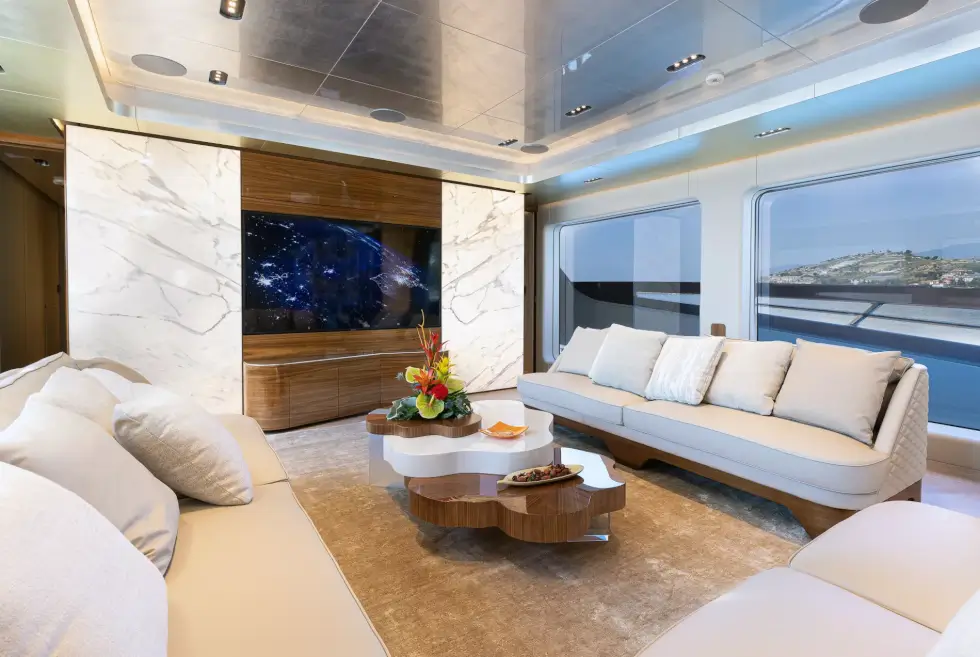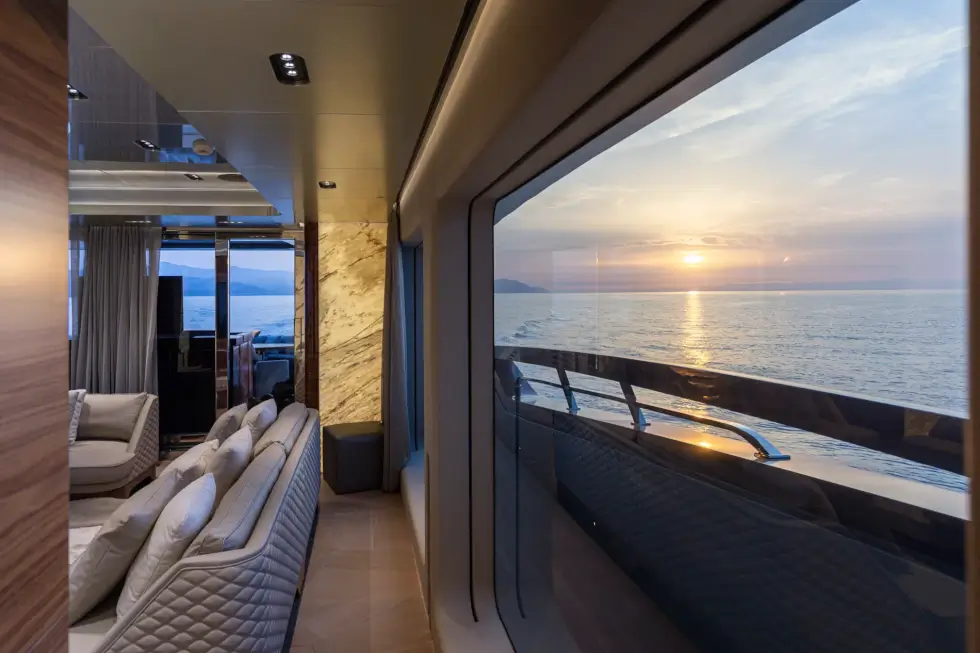 She then adds that “the Evo 120 is very popular in Asia because of the aggressive exterior as well as the many indoor and outdoor areas for entertaining guests.” The motor yacht flaunts an ultra-modern aesthetic with stunning interiors and plenty of social spaces for those on board.