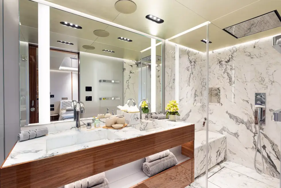 The latter holds a Williams Sportjet 435 tender and two PWCs. You can deploy these via a crane system. Finally, you can be sure that the Lucy packs everything you might need for long lavish journeys out at sea.